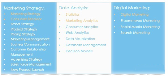 2. 相关课程及能力: 统计; 市场调研; 市场分析; R/Python/SQL 语言; 精通excel和tableau等