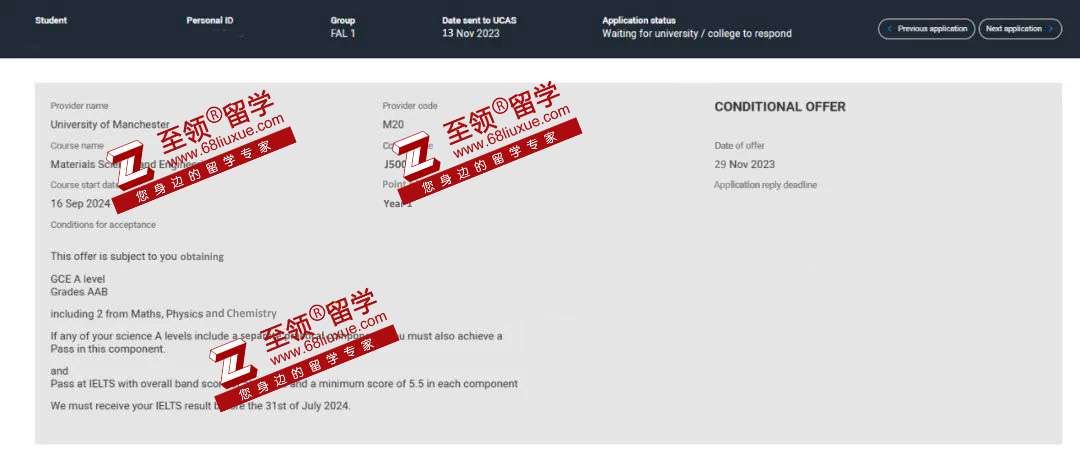 录取结果:曼彻斯特大学本科录取