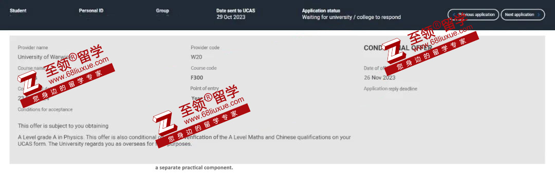 Y同学,北京某国际高中,A-Level,华威大学本科录取