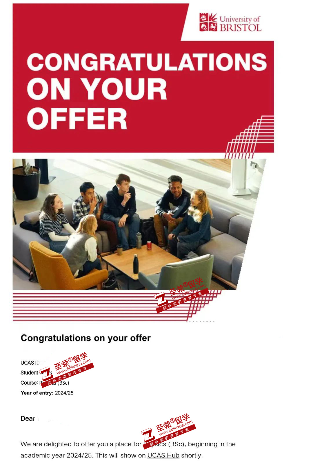 X同学从初中起理科就很好,还多次参加竞赛拿到了奖。文书材料紧紧抓住学生对理学的至浓兴趣来展开,突出学生在理科方面的天分和对更深层次知识的渴望。在至领老师的帮助下,X同学顺利拿到布里斯托大学本科录取。