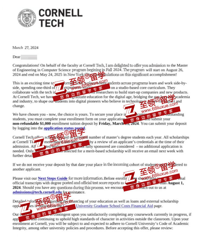 录取结果:Cornell University,M.Eng in Computer Science康奈尔大学计算机科学工程硕士录取