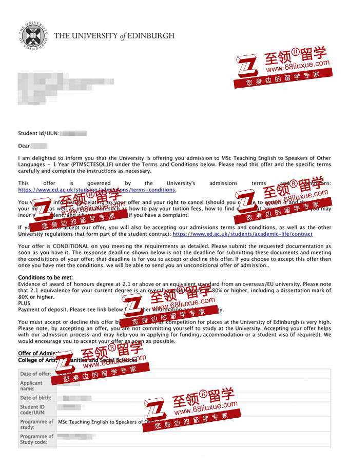 录取结果:The University of Edinburgh,MSc Teaching English to Speakers of Other Languages (TESOL) 爱丁堡大学TESOL录取