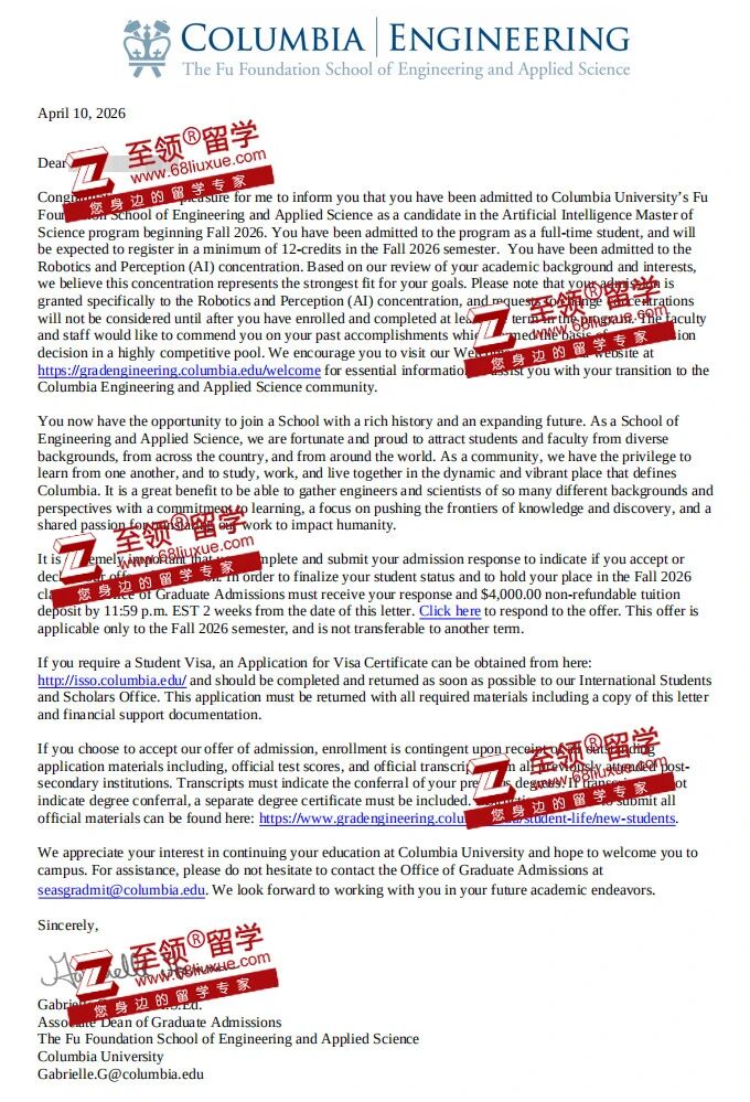 申请阶段,文书材料中重点突出其机械工程背景下对AI技术的理解与应用,强调跨学科视角带来的问题解决优势。三封推荐信分别来自机械工程导师、AI项目指导教授及实习主管,从不同维度印证其学术潜力与跨界适配性。最终,M同学凭借扎实的学术基础、清晰的职业规划与差异化背景,成功打动哥大招生官,圆梦常春藤AI硕士项目。