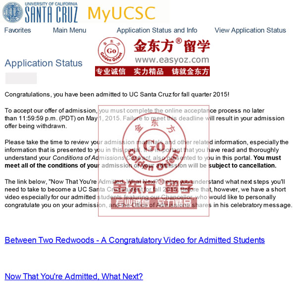 录取结果:加州大学圣克鲁兹分校机械工程本科