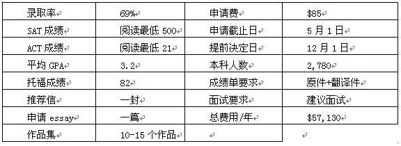 由于艺术设计领域跟文科理科工科商科等不太一样,在U.S. News排出的十大名校中有一半是我们平时不大熟悉的。这些艺术院校对SAT、ACT、GPA等成绩要求并没有特别高,而是对作品集(portfolio)更为看重。因此,我们建议有志于申请艺术学院的同学可以去看看各个学院提供的往届学生作品集,作为进一步参考。