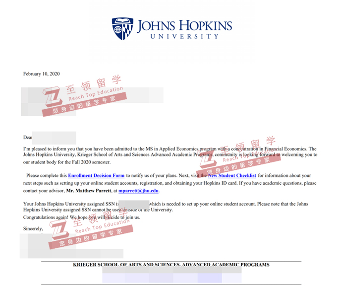录取结果:JHU,MS in Applied Economics with a conmuniration in Financial Econonmics约翰霍普金斯大学金融经济学硕士录取