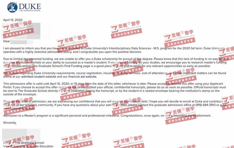 录取结果:Duke University,Master in Interdisciplinary Date Science杜克大学数据科学硕士