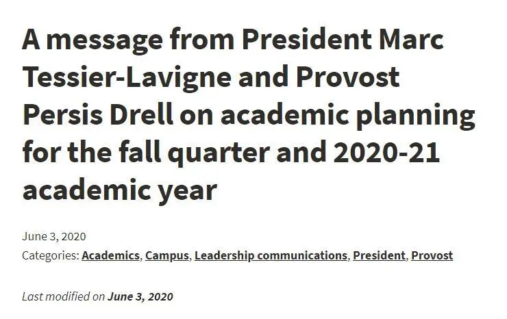 据福布斯官网消息,斯坦福大学将于今年秋天重新开放,但由于对冠状病毒的持续影响,将同时保留在线教学的授课方式。