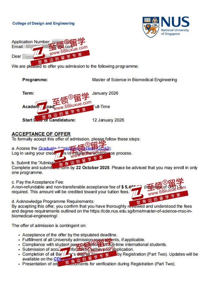 申请提交后2个月,F同学成功获得新加坡国立大学生物医学工程硕士2026年1月入学OFFER!
